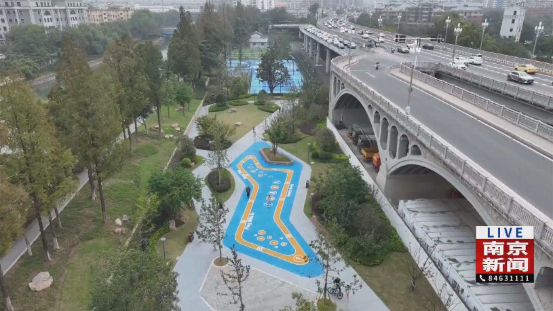 鼓樓城發(fā)集團(tuán)橋南一村綠化項(xiàng)目負(fù)責(zé)人王文棟介紹道:“我們結(jié)合金川河堤壩,進(jìn)行了因地制宜的建設(shè)。游園的步道沿著堤壩有三公里多,大家可以在公園里面休閑。堤壩緊貼著南京長(zhǎng)江大橋,相當(dāng)于一個(gè)文化的延伸。”