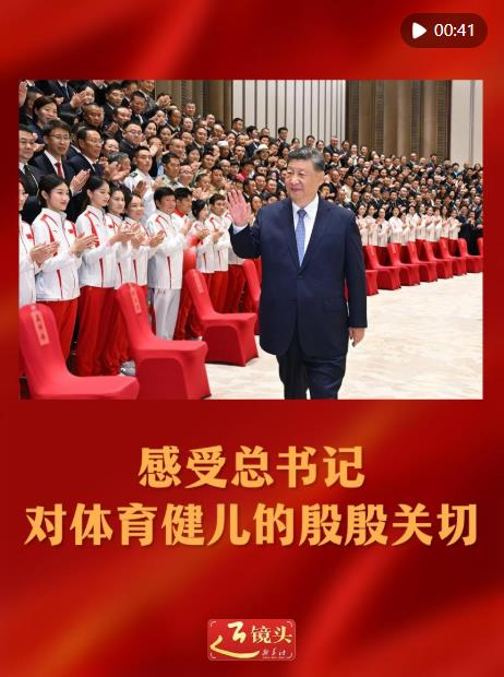 習近平總書記高度重視和關心體育事業,黨的十八大以來多次寄語中國體育健兒。每次見到大家,總書記都會點贊運動員們的優異成績和拼搏精神,勉勵大家奮力拼搏、再創佳績,為建設體育強國作出新貢獻。